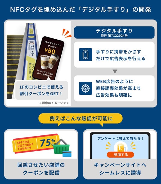 インでの訴求だけでなく、エスカレーター利用者の携帯電話を活用したデジタルデータの共有を同