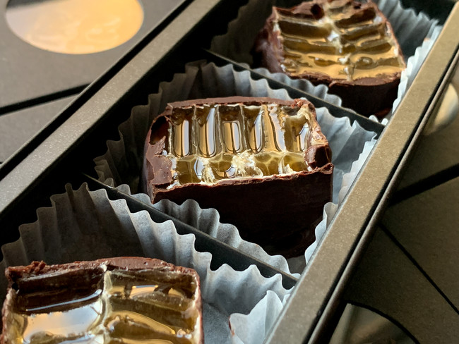 口に入れると、チョコレートの中からハチミツが溢れ出します。