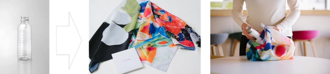 パンテックは、ペットボトルを粉砕、再生原料加工を行い、再生ポリエステル繊維化して風呂敷を製造するアップサイクルのスキーム構築をプロデュースしました。