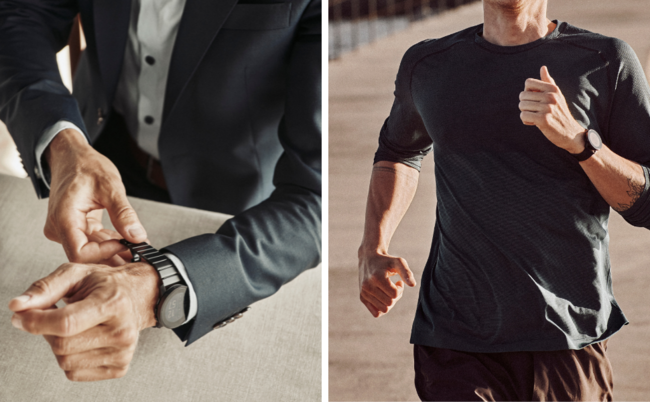 エレガントなデザインと上品な美しさを追求。よりフォーマルな環境で着用できるほど洗練された、ダイヤモンドのようにカーボンコーティングされたチタンブレスレットを特徴とするプレミアムモデルはスポーツウォッチでは唯一無二の商品です。付属の柔軟なシリコンストラップにより、スポーツやアドベンチャーへのシームレスな移行が可能になります。