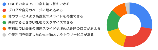 ドクセルをはじめとするスライドを共有サービスはPDFやPowerPoint資料をWebで公開したりリンクで送ったりすることができ、送られた相手はPCでもスマートフォンでもインストールすることなくスライドを閲覧することができます。アンケートの結果でもこのような共有方法の便利さを挙げた回答が多数ありました。
