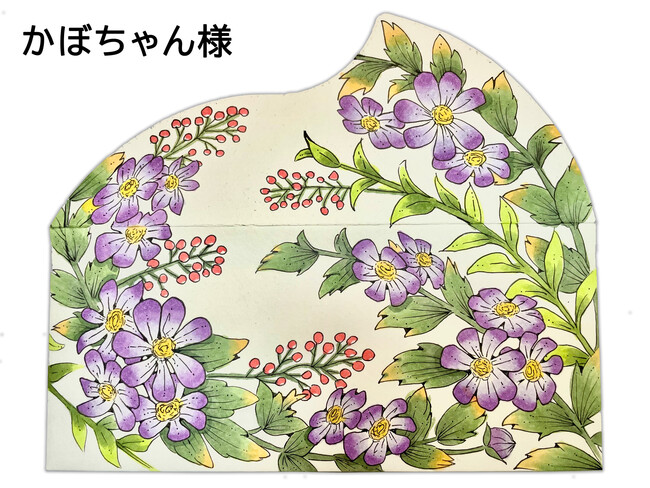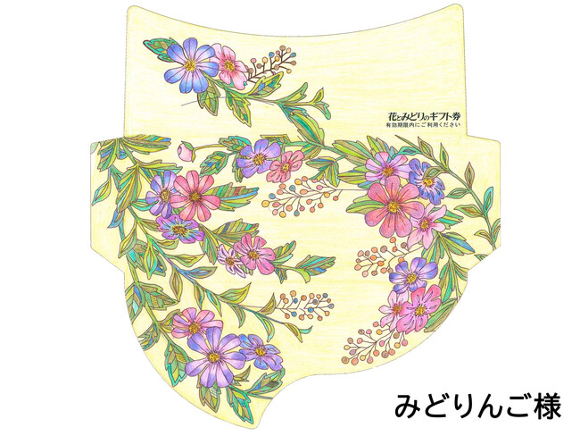 本コンテストは、店頭で「花とみどりのギフト券」を購入の際にお渡ししている贈答用封筒(お祝い用)の線画の花柄に色をつけて応募していただくものです。ぬり絵の台紙となる専用封筒は「花とみどりのギフト券」取扱店で配布(一部店舗を除く)している他、専用ページからのダウンロードでも入手できます。「花とみどりのギフト券」や花を贈ることを身近に感じていただくきっかけの1つになればと考えております。