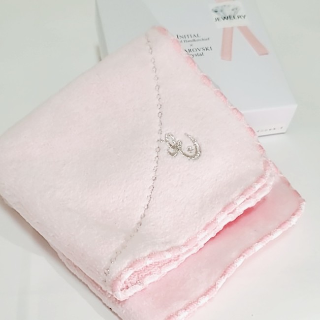 ・イニシャル入りジュエリーハンドタオル(タオルはホワイト、ピンクから選択、イニシャルは26種の英字から選択)