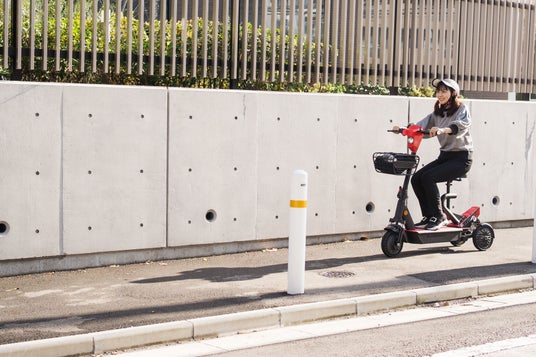 車体後部の2輪が常に接地していることで、停車時もバランスを保ちやすく、片足をつかずにピタッと止まることができます。信号待ちの際なども、立っていても座っていても車体に乗ったままで安定して停まることができ、2輪車のように足を地面につく必要がないため、身体的な負担を大きく軽減します。