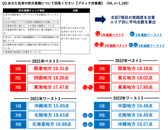 3.<地域別防災意識ランキング>東海地方が3年連続ベスト3にランクイン