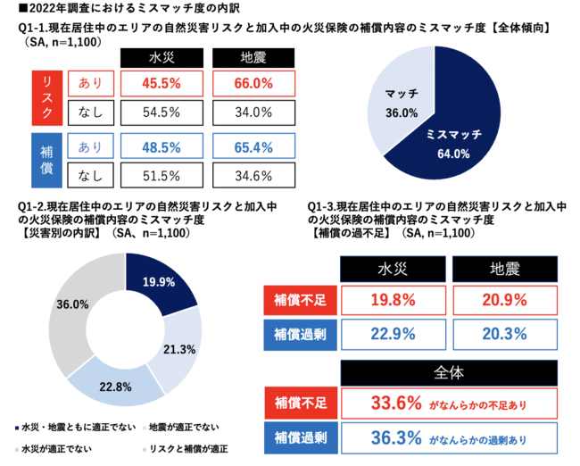 1.自然災害リスクと火災保険の補償内容のミスマッチ度は依然全体の6割を超えるものの、2年連続減少傾向