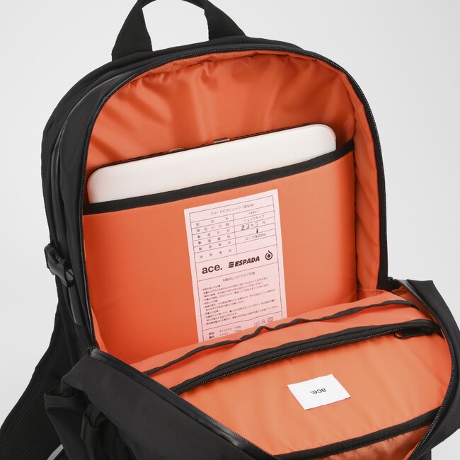 リュックの表生地には、回収されたペットボトルを原料とする再生ポリエステル「エコールクラブ(R)︎」を使用。ペットボトルの不法投棄等による海洋ゴミ問題や、ポリエステルの製造等で発生するCO2の削減に貢献できるプロダクトです。この生地は強度や耐久性に優れ、その強靭さはライフジャケット商品にも採用されるほど。なお、この生地を使ったライフジャケットは、救命胴衣として史上初のエコマークを取得しています。