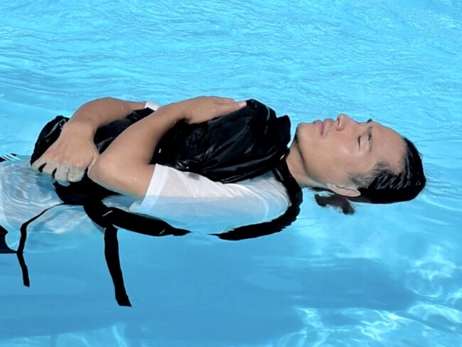 ライフジャケットに用いられる、特殊な浮力体をクッション材として使用。日常ではデジタル機器などの荷物を衝撃から守り、非常時には浮力を発揮します。その浮力性能は、国土交通省の型式承認基準における浮力補助具以上。大人でも24時間以上、水面から顔を出して呼吸を確保し、冷静に救助を待つことができます。
