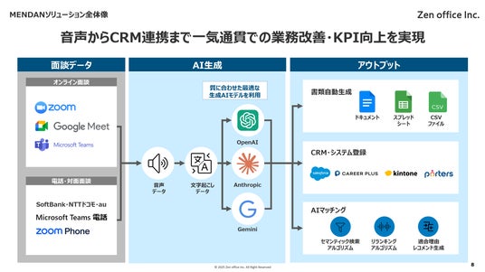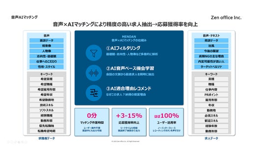 Zen office株式会社(本社:大阪府、代表取締役:岩瀬 恭裕)は、人材紹介特化の音声×AIエージェント「MENDAN」において、国内大手携帯3社(SoftBank・NTTドコモ・au)のモバイル回線に対応するアップデートをリリースいたします。