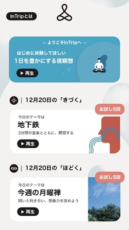 InTrip(イントリップ)は、禅の教えで暮らしにゆとりをつくり、自分と向き合うお手伝いをするアプリです。