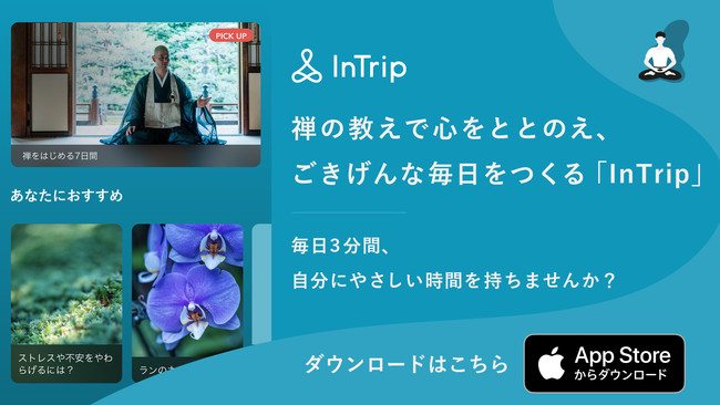 株式会社InTripは、アプリを通じてみなさんの思考を深めるサポートをするとともに、禅というすばらしい文化を世界に向けて発信していきます。