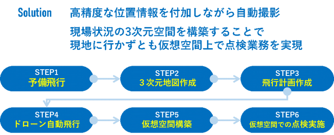 見えない場所・行けない場所に対し、事前の精密なドローン撮影により構築した仮想空間上で点検が可能に