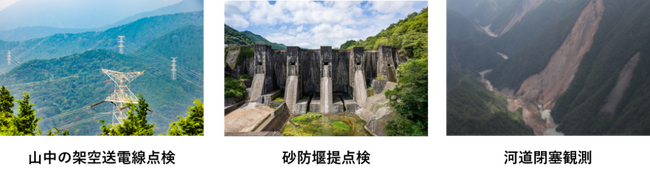 ChronoSky Eyesは、あらゆる環境の点検業務へのドローン活用に貢献します。特に人の立ち入りが困難な場所での点検業務が必要となるシーンで大きく貢献します。