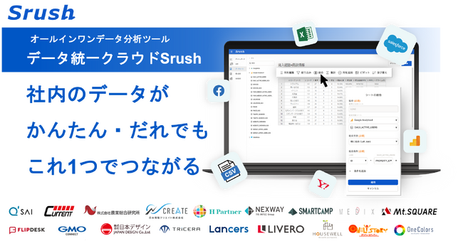 Srushはだれでも簡単に、あらゆるデータを統一し、すぐに分析に着手できる新世代型のBIツールです。分析に至るまでのデータ抽出や加工の手間なく、各種ツールとの連携から可視化までをダッシュボード上で完結。ノーコード・ワンストップで導入1日目から分析をはじめられる画期的なツールです。