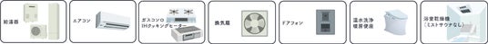 給湯器 / エアコン / ガスコンロ・IHクッキングヒーター / 換気扇(3台) / ドアフォン / 温水洗浄暖房便座 / 浴室乾燥機(ミストサウナなし)