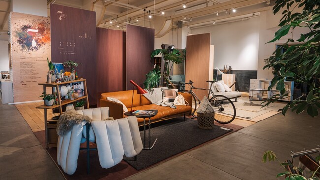 7 COLOR OF LIVINGでは、各展示ブースに「URBAN BROWN(洗練された茶色)」、「NATURAL WHITE(素な白)」、「TENDER BLACK(柔和な黒)」、「CROSS CULTURE GREEN(異文化の緑)」、「CALM GRAY(平穏な灰色」、「SUMMER HOUSE BLUE(避暑地の青)」、 「BUFFING ORANGE(艶やか橙色)」 7つのテーマカラーを設けるとともに、各々ペルソナを設定。その色を纏った主のリビングを訪れたようなリアリティさを演出しました。