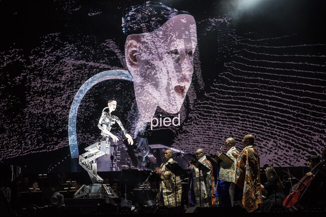 このオペラは、アンドロイドの声から始まる。オペラという西洋の人間中心主義の極地のようなフォーマットを挑発するかのようにAIを搭載した人型ロボットが舞台の中央に立っている。このオペラには優れた指揮者もオペラ歌手もいない。