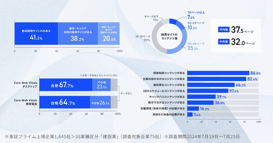 このような背景のもと、当社は建設業界の採用サイトの現状を調査し、企業がどのように人材確保に向けた情報発信をおこなっているかを明らかにするために本調査を実施しました。具体的には、求職者にとって魅力的な採用サイトの指標として情報提供の質と量を評価しました。