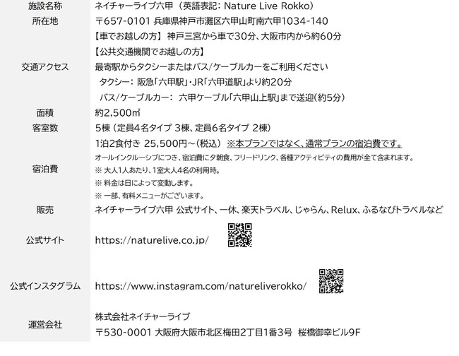 <ネイチャーライブ六甲 施設詳細情報>