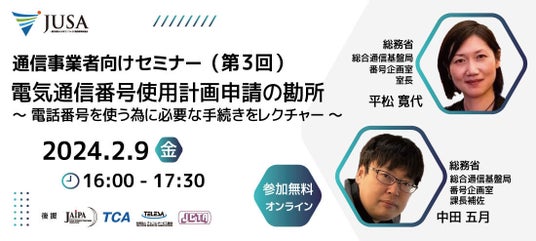 今回は総務省 番号企画室殿に登壇いただき、この「電気通信番号使用計画認定」の手続きをテーマに、制度の趣旨や手続きの具体的なポイント、注意点等についてお話いただきます。ぜひご参加ください。