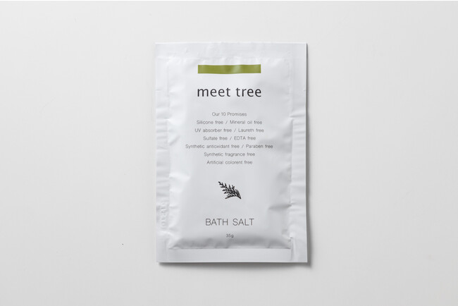 「エシカ宿泊プラン」は、エシカのブランドコンセプトである「私(美容・健康)によくて、世界(環境・社会)にイイ。」というテーマに共感したライフスタイルブランドとともに、エシカルでサステナブルな世界観、ライフスタイルをリアルに体験する場を提供します。今回、その宿泊プラン第1弾に「meet tree(ミートトゥリー)」をはじめ、「athletia(アスレティア)」「bareMinerals(ベアミネラル)」の3ブランドが参加します。3社の商品はスペシャルアメニティとして、ホテル インターコンチネンタル 東京ベイの「エシカ宿泊プラン」をお申込みのお客様に提供されます。meet treeではHINOKI バスソルト(桧の木の香り、桧の葉の香りのいずれか)を提供予定です。
