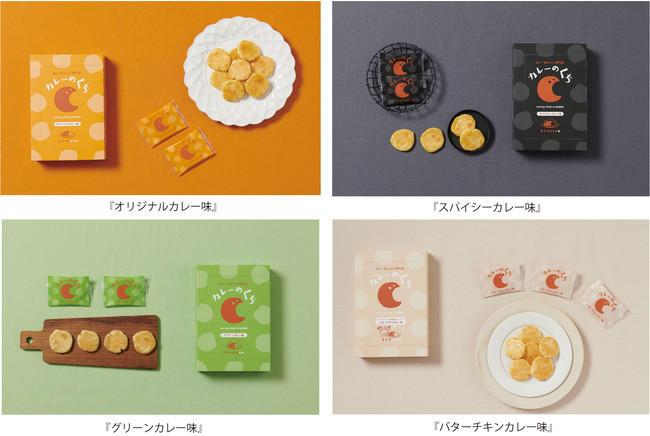 「カレーのくち」を満たしていただけるようご用意した4つのフレーバーは、10種類以上のスパイスやハーブとオイルで独自の調合を施し、風味と旨味をつけました。表面はカリッ、中はサックリのやさしい食感と、カレーの旨味がじわっと感じられるように、鉄板焼き製法で手間暇をかけて丁寧に焼き上げています。