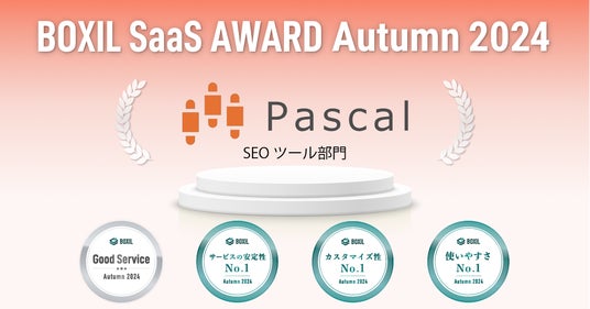 株式会社オロパスが提供するSEOツール「パスカル」は、スマートキャンプ株式会社(以下「スマートキャンプ」)が主催する「BOXIL SaaS AWARD Autumn 2024」のSEOツール部門で「Good Service」「サービスの安定性No.1」「カスタマイズ性No.1」「使いやすさNo.1」に選出されたことをお知らせします。