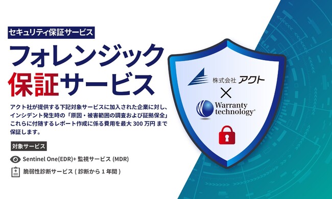 株式会社アクト(本社:東京都文京区、代表取締役社長:小林智彦、以下 アクト)は株式会社Warranty technology(本社:東京都千代田区、代表取締役:宮原 年明)と提携し、現在、提供しているセキュリティサービスから、事故対応保証を無料付帯したより手厚いサービスへと変更致します。