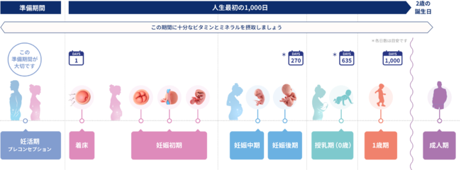 ママのおなかの中で受精卵が着床してから赤ちゃんが生まれて2歳の誕生日を迎えるまでを指し、この期間に赤ちゃんにしっかりと栄養を与えてあげることが、赤ちゃんの成長や将来の学ぶ力の基礎をつくり、成人期までの健やかな成長を促します。バイエル薬品では、この期間を夫婦と赤ちゃんにとって大切な出発点と位置付けており、「エレビット(R)」を通じてその栄養の重要性について認知を高めるためのさまざまな取り組みを展開しています。