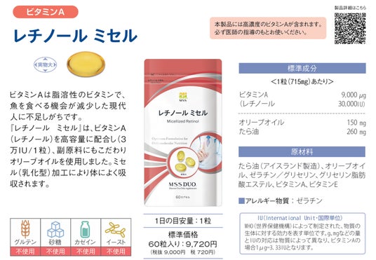・対象製品:MSS DUO(R)『亜鉛』(90粒)、『ビタミックス(R)コンプリート』、『レチノールミセル』(※1)