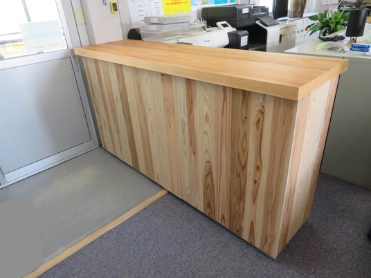 - 既存什器の活用によるコスト抑制:従前から使用されている机やカウンターにそのまま自然素材を装着できる仕様とすることで、コストを抑制。施工時間の短縮にも寄与。