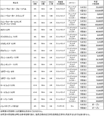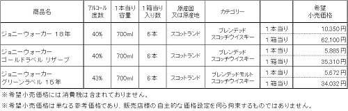 「ジョニーウォーカー ブルーラベル」、「ジョニーウォーカー 18年」、「ラガヴーリン」、「モートラック」などを販売開始