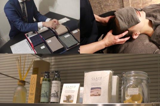Cportが現在取り組んでいる三事業(オーダースーツ・ドライヘッドスパ・オーガニックセレクトショップ)の様子。