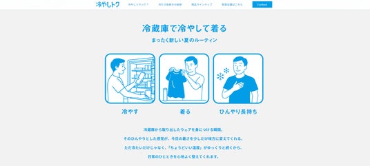 オクノテは、コンセプト開発(着る前に冷やすという新習慣)、ネーミング開発(「冷やしトク」)、ブランド設計、クリエイティブディレクション、パッケージおよび販促設計を担い、素材技術を生活者の体験へと翻訳する役割を果たしました。