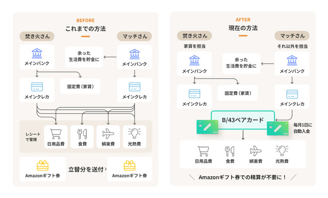 夫婦や同棲カップルの家計管理をサポートするためリリースした「B/43ペアカード」。