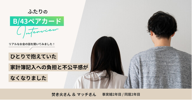 多くのペアに使っていただく中で、「自分たち以外のペアがどのように家計管理をしているのか知りたい」というお声を多く頂戴しました。そこで、B/43ペアカードを利用している方の声を記事にまとめ、家計管理についての事例を共有し、おふたりの生活をもっと豊かにするエピソードをユーザーインタビューのかたちでお届けしていきます。