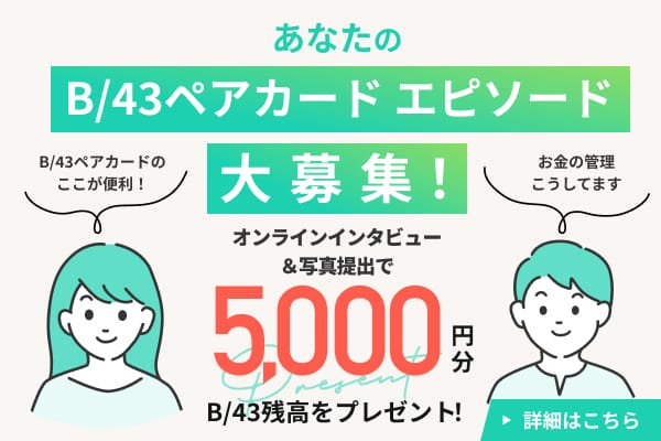 B/43ペアカードをお使い中のふたりのリアルなお金の話をお届けします!