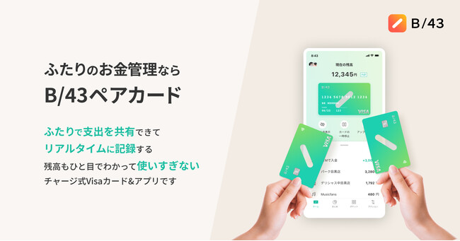 「誰でも使えて、継続しやすく、リアルタイムなお金管理の方法」としてリリースした、Visaプリペイドカードと家計簿アプリがセットになった新しい家計管理サービス『B/43(ビーヨンサン)』。個人だけではなく、家計を共にする大切な人同士の家計管理もサポートするための「B/43ペアカード」機能を2021年7月にリリースしました。