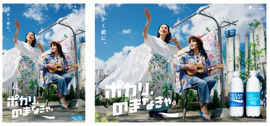 CMでは、ポカリ母娘がウクレレを奏でて歌う姿や、鈴木さんの演奏にあわせて吉田さんがフラダンス風のダンスを踊るひと幕など、夏をリラックスして過ごすふたりの姿が描かれます。
