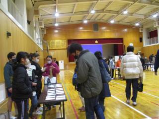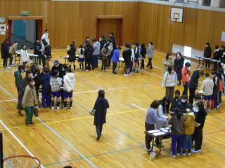 最終日には保護者の皆さんや、地域の方々にお客さんになってもらい、子供たちの経営する会社の製品であるはがきを販売するバザーを行いました。