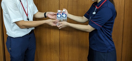 【内容】災害備蓄品(ボトル水)816本、自社作成「災害マップ」816枚