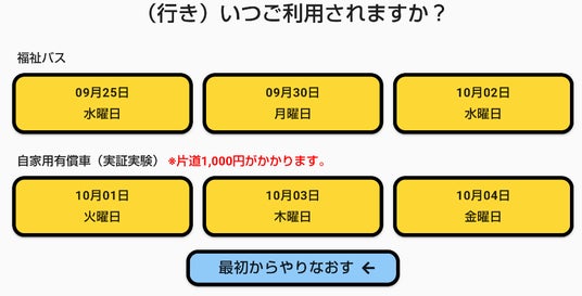 高齢者等福祉バスのシステムを改装した公共ライドシェアの予約画面