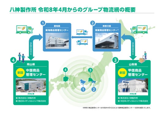 株式会社八神製作所(本社:愛知県名古屋市中区、代表取締役社長:荒木 篤志、以下「当社」)は、セイエイ・エル・サンテ ホールディング株式会社を親会社とする「セイエイグループ」の一員として、グループにおける物流サービスの品質向上と、得意先様および仕入先様を含めたサプライチェーン全体の最適化を目的として、下記のとおり「甲信商品管理センター」ならびに「中国商品管理センター」を開設します。