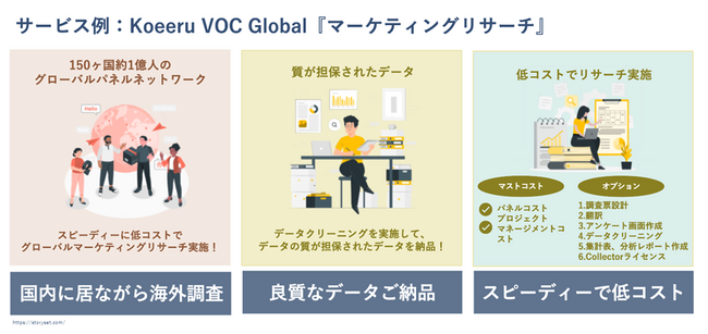 Koeeruは、データ越境型の グローバル リサーチ・プラットフォームを提供する企業です。国内外のリサーチに関する課題解決に加えて、社内情報や外部のオープンデータの統合により、活用しきれなかったリサーチデータにより深いインサイトを提供することを目指しています。