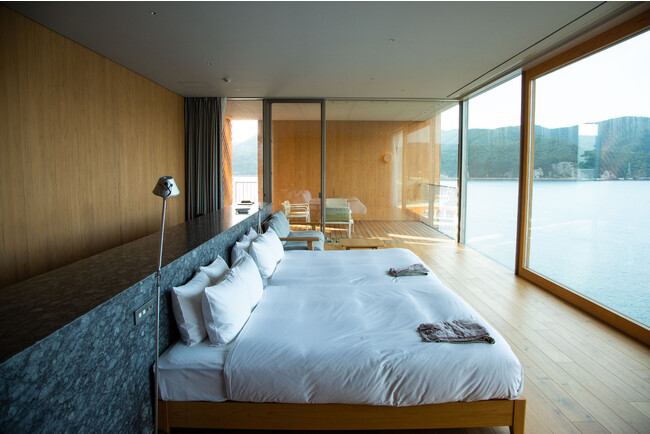 全室オーシャンフロントの客室で、海を眺めながら贅沢なリラックスタイムを楽しめます。ジオパークの拠点施設であるEntôには、地球の成り立ちや隠岐の歴史を学べる展示室や恐竜などの古生物の化石が展示されたスペースがあります。隠岐の魅力を学び、隠岐の自然の中で音や匂い、風景を五感で感じることができます。