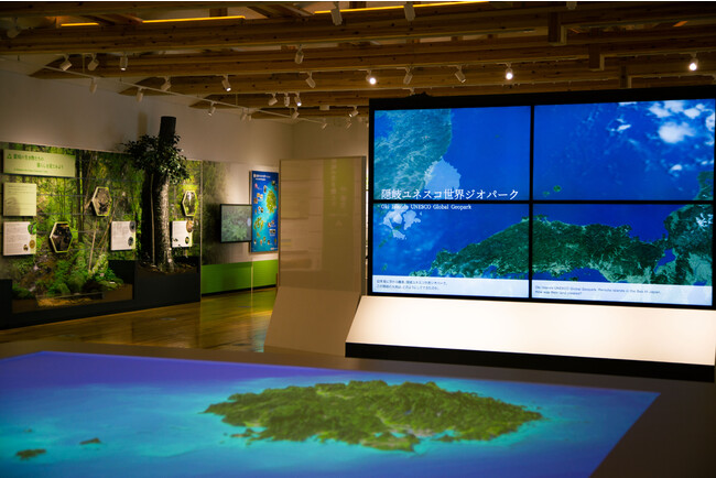 島全体が「隠岐ユネスコ世界ジオパーク」として認定されている隠岐諸島の成り立ちと、その大地の上で育まれた離島ならではの生き物や歴史文化とのつながりを展示しています。フェリー乗り場がある隠岐ジオゲートウェイの2階にあります。館内の展示の中で、隠岐や地球の魅力がより一層深まります。