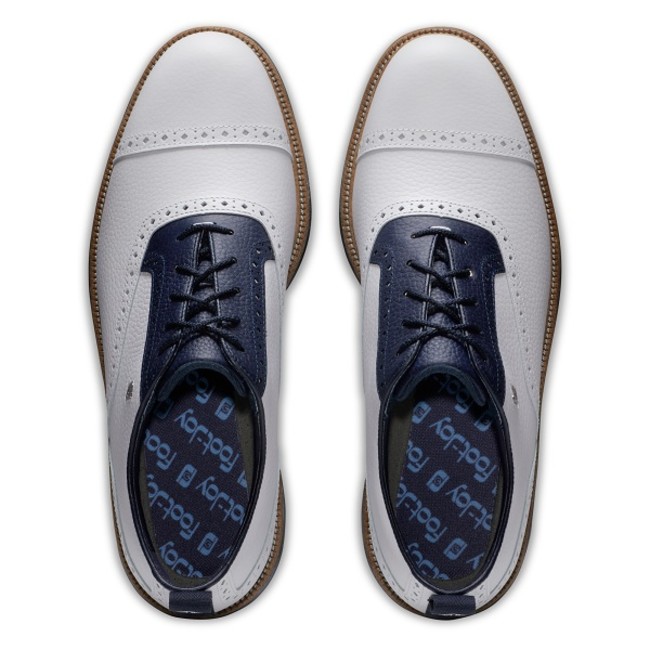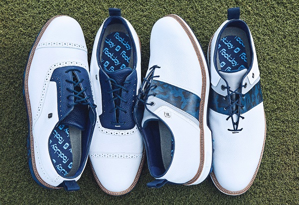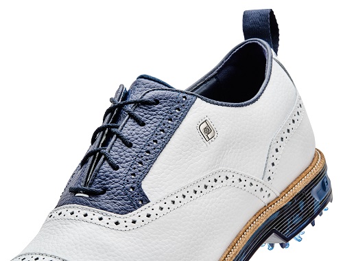 トッド・スナイダー氏は、FJを代表するシューズ「ドライジョイズプレミアターロウ」と「ドライジョイズプレミア パッカード」を美しいブルーのレザーでアクセントをつけ、スタイリッシュなデザインに生まれ変えました。