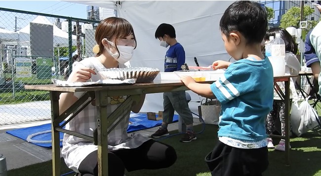 感染症が流行し、遊ぶ機会が減った子どもたちがワクワクする体験の場を提供したい、普段子育てを頑張っている保護者の方々がリフレッシュできる場を作りたいという想いからできたブースです。