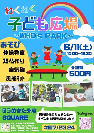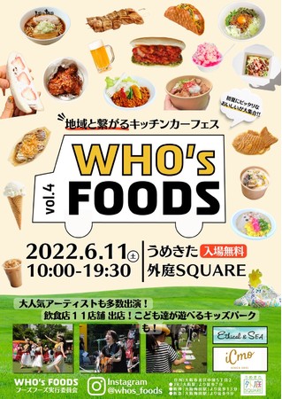2022年6月11日(土)に、地域と繋がるキッチンカーフェス『WHO's FOODS』を開催します。保育士主催の子どもの体験ブース『わくわく子ども広場~WHO's PARK~』も同時開催します。