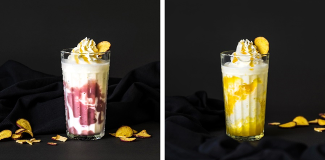 ミルク感たっぷりの「バニラスムージー」をベースに、“ナイト”には「紅いもペースト」、“ムーン”には「さつまいもペースト」とそれぞれのカラーをイメージしたお芋のペーストを使用。
